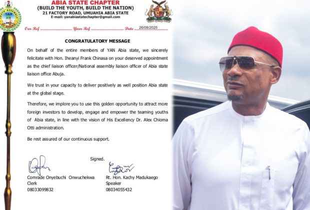 The Youth Assembly of Nigeria (YAN), Abia State Chapter, has extended heartfelt congratulations to Hon. Iheanyi Frank Chinasa on his ...